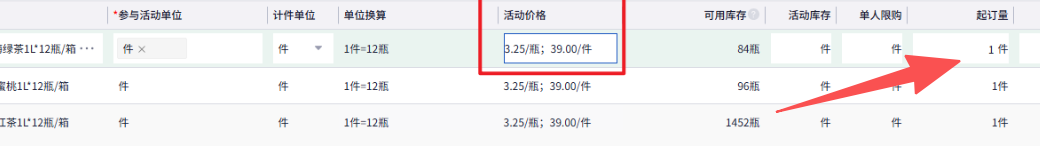 客户活动价格配置的就是39 这个是满100件减0.01 但是每件商品的起订量是1,没有整个活动的起订量,导致门店可以1件就享受到了活动价,系统缺少一个整个活动的起订量,